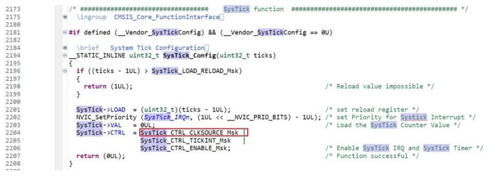 用户需要访问并修改 ARM 的 CMSIS 库中改变参考时钟的寄存器(CTRL 寄存器)中的值,定义在 ra>arm>CMSIS_5>CMSIS>Core>Include>core_cm23.h 文件中。