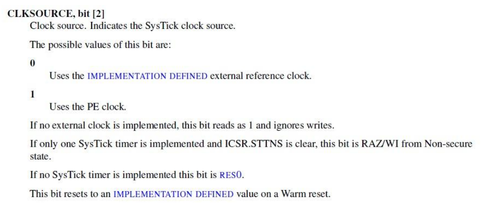 作为参考,请参阅下面的 ARM 手册中第 1853 页的内容。在本文档中,相应的寄存器名为 SYST_CSR,但在 CMSIS 库中,它被称为 CTRL。