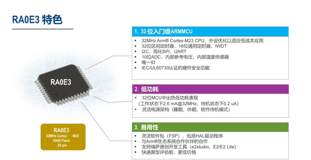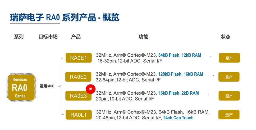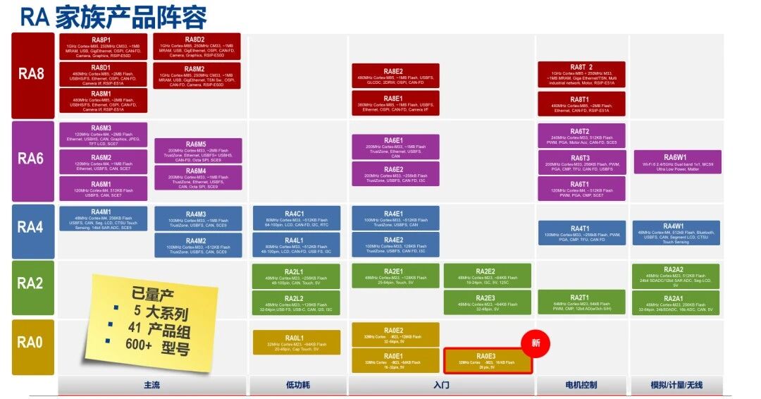 RA0E3进一步扩展RA家族产品阵容,丰富了入门级RA0系列产品线。